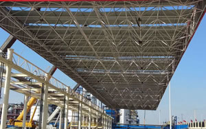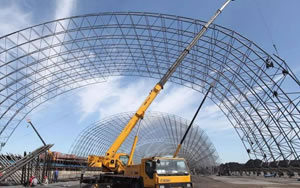 球形網(wǎng)架施工方案 1、工程概況和總體部署 網(wǎng)架采用正放四角錐形式,采用螺栓球接點,采用普通鋼管材,采用兩側焊接水平支座...
